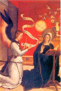 at the viewer, who stands in the place of Gabriel delivering his greeting.