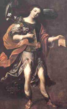 Colombia: Gabriel, alone looking forward, with the lily as attribute of the