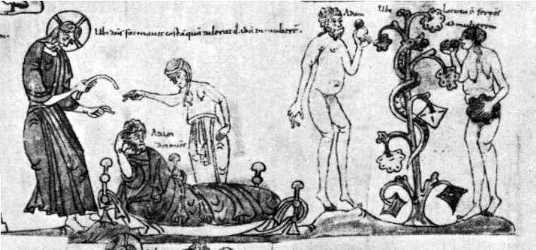 bedposts, as the Lord creates Eve from the rib He holds in His hand.
