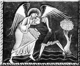 Jacob wrestling with the angel, Munich Psalter.