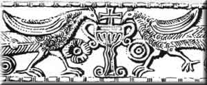 from the stylized Fount of Life; from a carved marble panel, once gilded,
