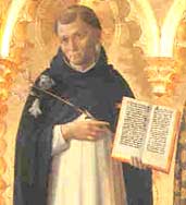 show Gabriel with lily or palm leaves in his hands, with Saint Dominic holding