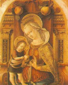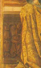 Enthroned, with detail, c. 1476, Museum of Fine Arts, Budapest: the Christ
