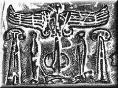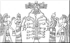 Assyrian cylinder seal (drawing), with the Tree represented by pomegranate-poppies,